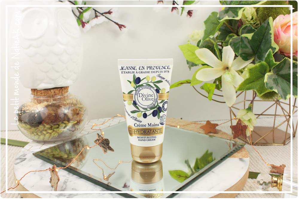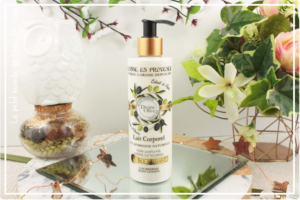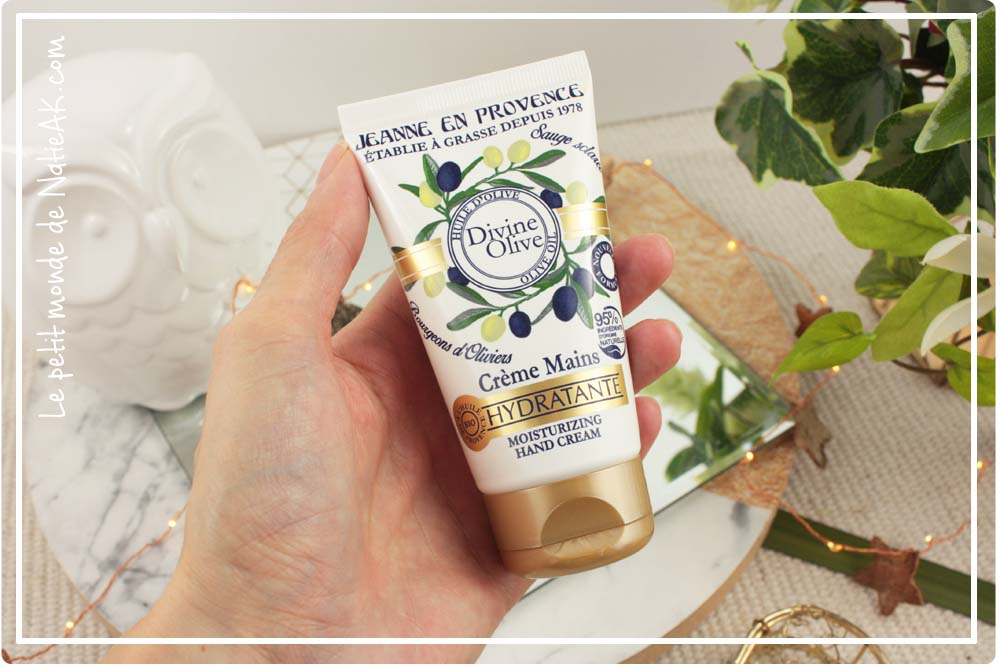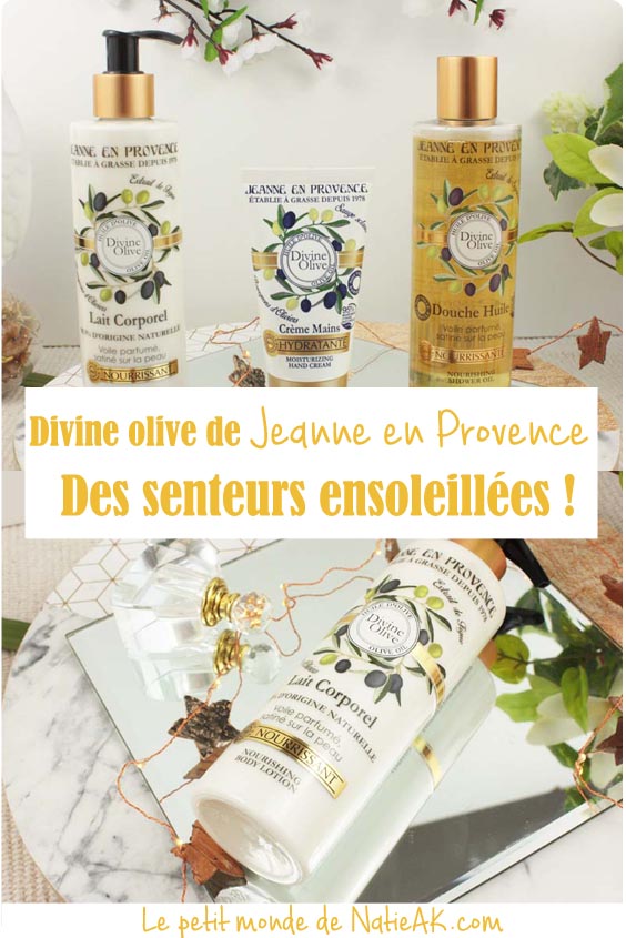 Filiale de la marque française Jeanne Arthes créée à Grasse en 1978, Jeanne en Provence a vu le jour en 2012, afin de proposer de la cosmétique et de la parfumerie aux senteurs du sud.  C’est ainsi que la gamme Divine Olive a vu le jour en 2016 dont l’huile sèche multi-usage qui a fait l’objet d’un article en 2017.