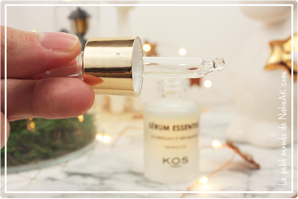 Commençons la découverte avec le sérum essentiel de Kos Paris, destiné à réparer et nourrir le visage et le cou. Spécialisé dans les huiles botaniques, la marque valorise les bienfaits des huiles qu’elle veut concentrées, afin de pouvoir nous faire bénéficier de leurs bienfaits.