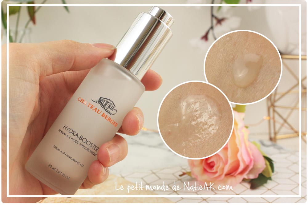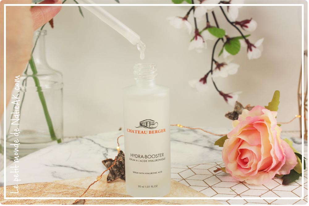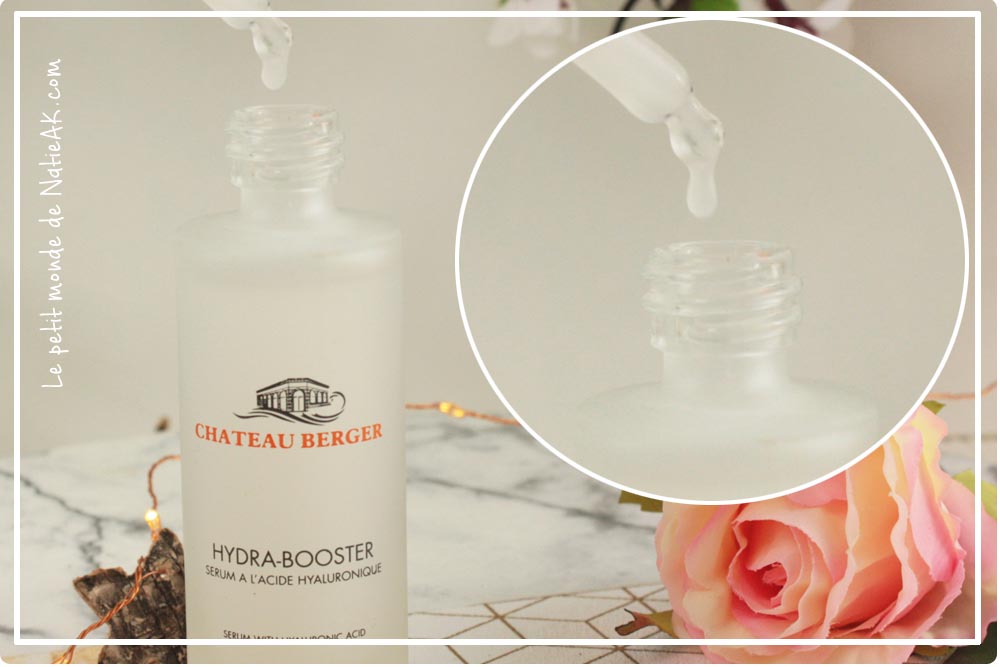 bienfaits de la mer et l’acide hyaluronique. Parmi les produits de Château Berger : l’Hydra-Booster, un sérum à l’acide hyaluronique : nous a-t-il convaincu ?