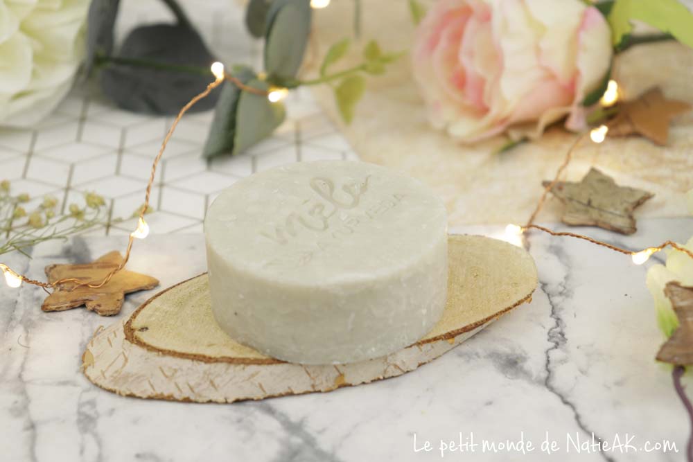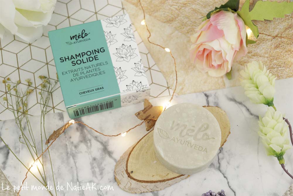 Ce shampoing solide Mélo Ayruveda est lui aussi de très bonne composition et obtient la note très qualitative de 79/100 pour Yukka.