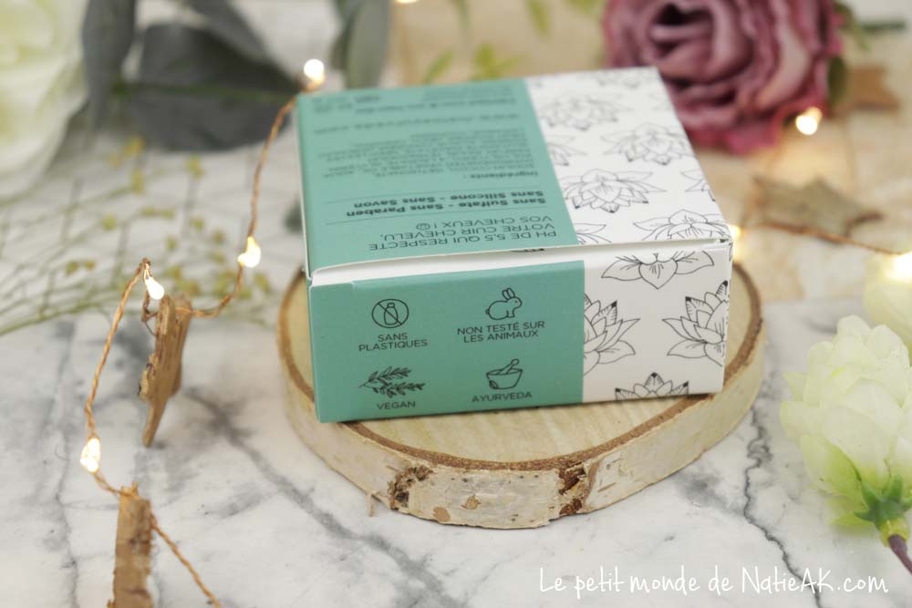 Non seulement, ce pain sans savon permet un nettoyage tout en douceur du corps, même la peau à tendance atopique de ma fille l’adore, mais il est tout aussi efficace comme nettoyant visage, démaquillant (il ne pique pas les yeux) et comme shampoing. En effet, ce pain sans savon intègre dans sa formule la plante ayurvédique Shikakai qui a des nombreuses vertus capillaires. Résultat, les cheveux sont tout propres et tout soyeux !