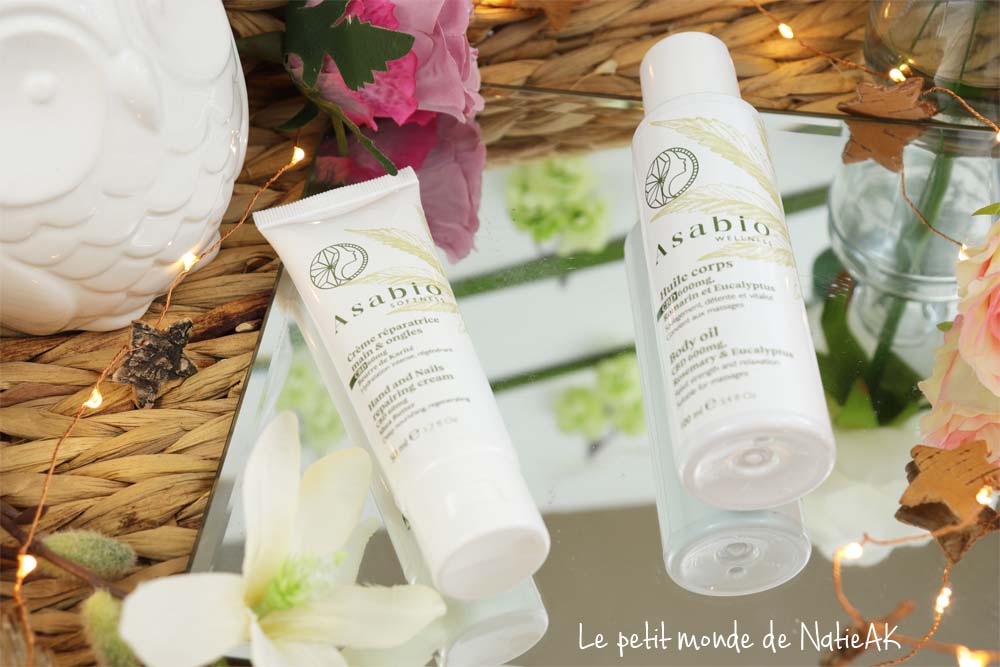 Cela m’a donné envie d’accepter la proposition de test d’Asabio. Mon choix s’est alors porté sur l’huile corps ainsi que la crème réparatrice main & ongles.