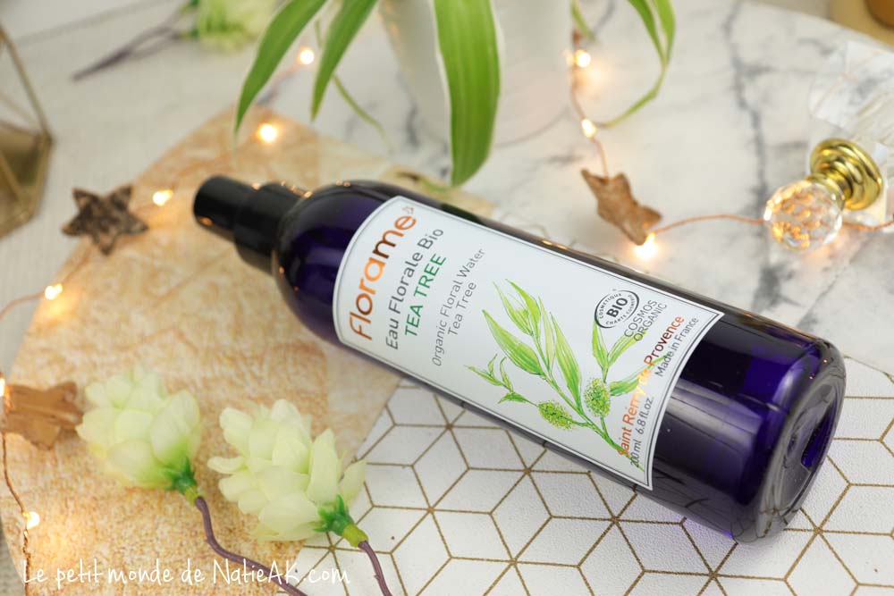 Cette eau florale tea tree lui permet donc de compléter ces soins . C’est une eau florale que ma fille apprécie car elle offre un parfum très délicat. Aimie l’applique en brumisateur matin et soir sur le visage et également le haut de la poitrine et du dos qui restent une zone où des boutons peuvent faire leur apparitions. Notons qu’on peut également l’utiliser pour assainir le cuir chevelu gras.