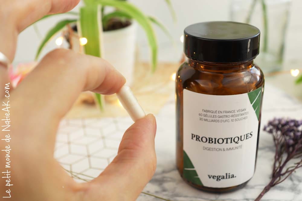 Pour répondre aux différents problèmes liés à la digestion, Vegalia a intégré dans dans sa formule de deux gélules 30 milliards d’Unité Formant Colonie (UFC) de bactéries vivants, associés à 10 souches françaises de probiotiques. Ces différentes souches – naturelles et Made in France – toutes assimilables par l’organisme offrant ainsi différentes actions qui se complète. La marque les a associés à des prébiotiques (inuline) afin de prolonger l’action de probiotique dans l’organisme.