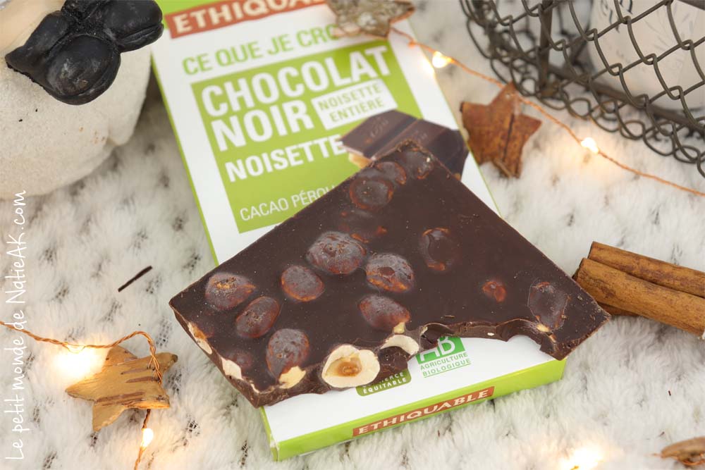 Je vois régulièrement en rayon les tablettes de chocolat Ethiquable mais je n'ai pas encore eu l'occasion de les goûter. Je me note surtout celle aux noisettes entières car c'est mon pêché mignon 🙂