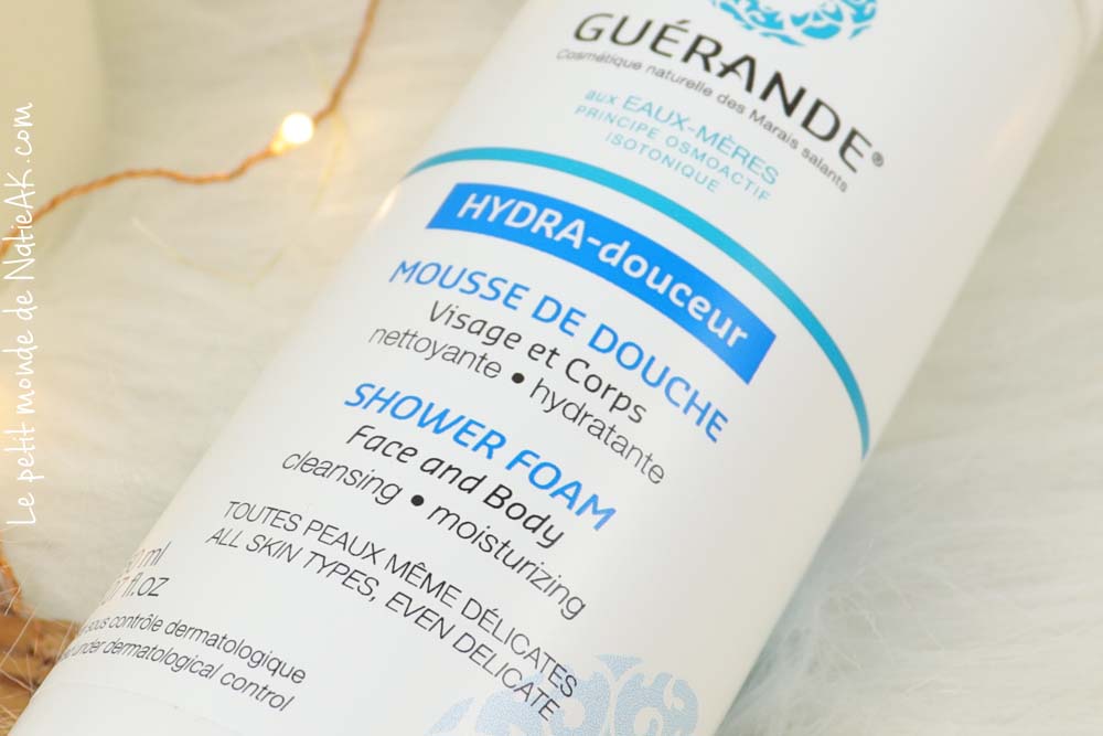 Après avoir grandement apprécié cet été la brume parfumée de Guérande, un soin de la gamme HYDRA, lamousse de douche Hydra-douceur vient compléter les produits hydratants. Et autant vous le dire de suite, elle répond très bien à ses promesses d’hydratation.