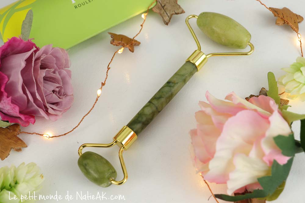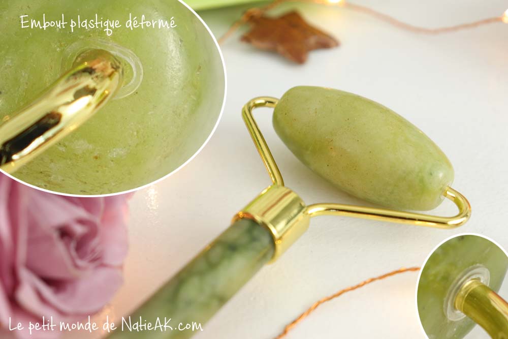 Ce que je constate malheureusement est que mon rouleau est de mauvaise qualité : la pierre ne roule pas correctement car l’embout plastique mal positionné empêche une rotation efficace. Il est donc inutilisable. Je constate que Girls n’ Nantes a eu également un gros souci avec son rouleau de jade, puisque la pierre s’est détachée dès la première utilisation.