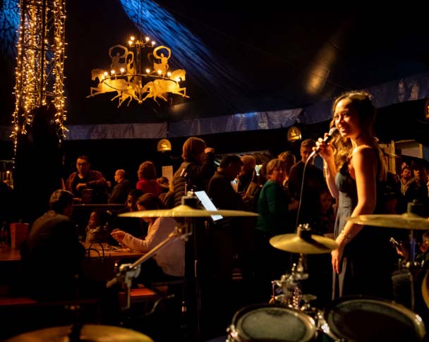 En effet, la famille a souhaité offrir un pré-show plein de surprises dès le moment de la restauration : si la décoration se veut toujours aussi féerique, le public savoure ses plaisirs gourmands autour d’une ambiance festive. C’est ainsi que la chanteuse Candice et les musiciens propose un spectacle musical entraînant.