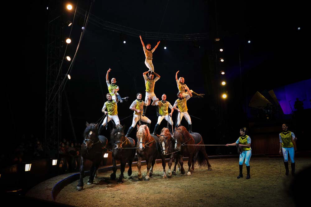 Place au spectacle : après une présentation en chanson des trois générations Gruss, la folie peut commencer sur scène : entre des numéros équestres, aériens et le numéro de clownerie revisité et modernisé, le temps passe très vite durant les 1 h 30.