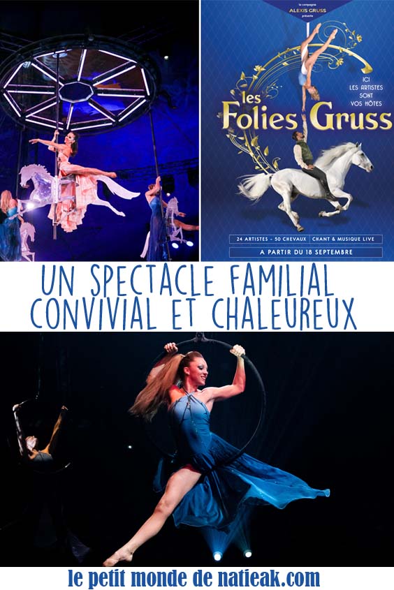 On s’émerveille devant la diversité des créations, avec notamment le numéro de haute voltige équestre très impressionnant, celui de la jeune génération (Célestine, Gloria et Venecia) avec les Falabella (une race l’une des plus petites races équines au monde) attendrissants. Les Folies Gruss, ce sont aussi des spectacles aériens avec trois sylphides Kaylie, Erica et Svetlana : des numéros de toute beauté qui m’ont subjuguée par leur beauté artistique.