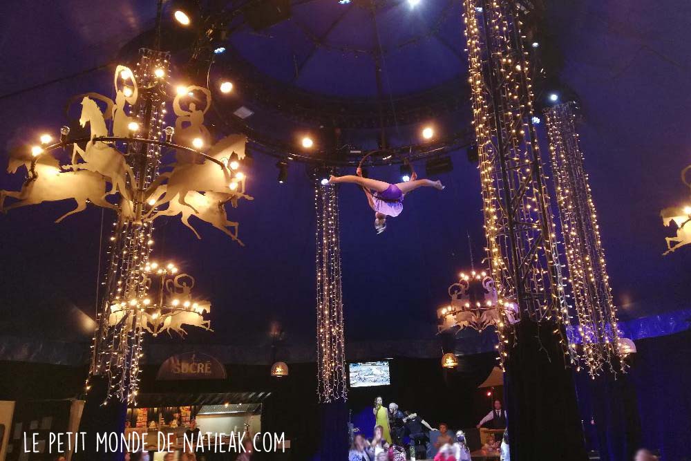 Mais la fête ne s’arrête pas là, puisque les artistes de la famille Gruss participent également au show. C’est ainsi que j’ai été émerveillée par la grâce de Svetlana Gruss, s’envolant tel un oiseau dans les airs.