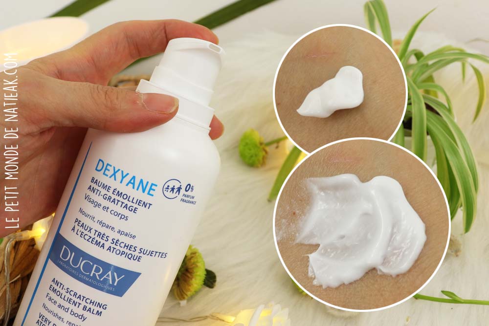 On termine avec le baume émollient anti-grattage Dexyane de Ducray : comme toute la gamme du même nom, il est destiné aux peaux très sèches sujettes à l’eczéma  atopique. Il s’agit d’un soin capable d’agir sur les démangeaisons et les tiraillements, afin de procurer un apaisement.