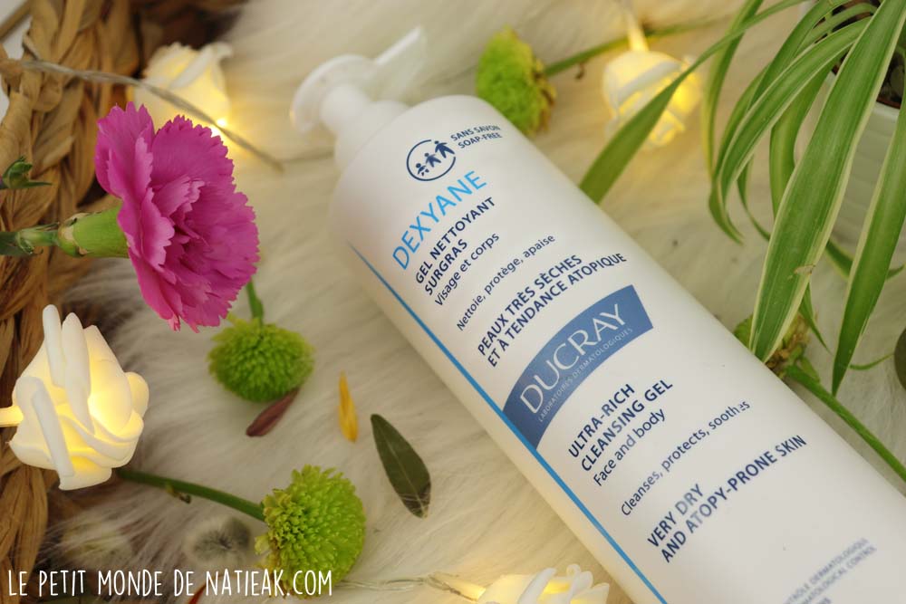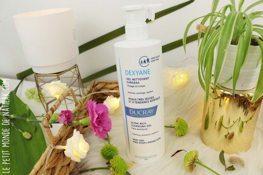 En  soin lavant, Ducray propose également un gel nettoyant surgras Dexyane visant à hydrater les peaux sèches à tendance atopique tout en renforçant la barrière  cutanée, afin de la protéger des agressions extérieurs. Il est particulièrement destiné aux peaux souffrantes d’irritations cutanées du fait de ses bienfaits apaisants capables d’agir sur les démangeaisons.