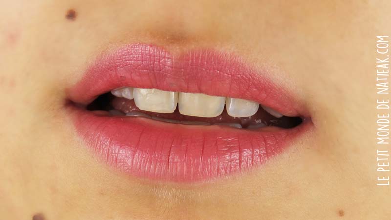 Ma fille Aimie s’est prêtée au test : l’application avec l’embout biseauté permet de déposer facilement la matière sur les lèvres et d’autant plus que sa texture crémeuse glisse sans résistance. Elle a même trouvé l’application plus facile qu’avec son rouge pur couture d’Yves Saint Laurent (son ral préféré).