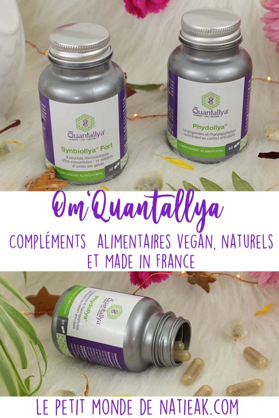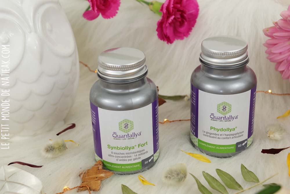 Om’Quantallya propose de nombreux compléments alimentaires : équilibre cardio-vasculaire, défenses naturelles, équilibre nerveux… Parmi leur gamme, nous avons opté pour Phydollya capable d’agir le confort ostéo-articulaire et Synbiollya fort capable d’agir sur l’équilibre intestinal.