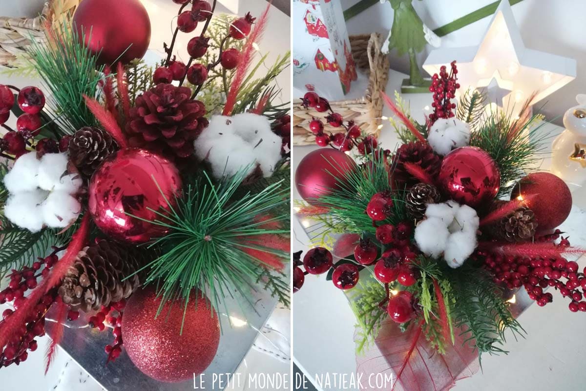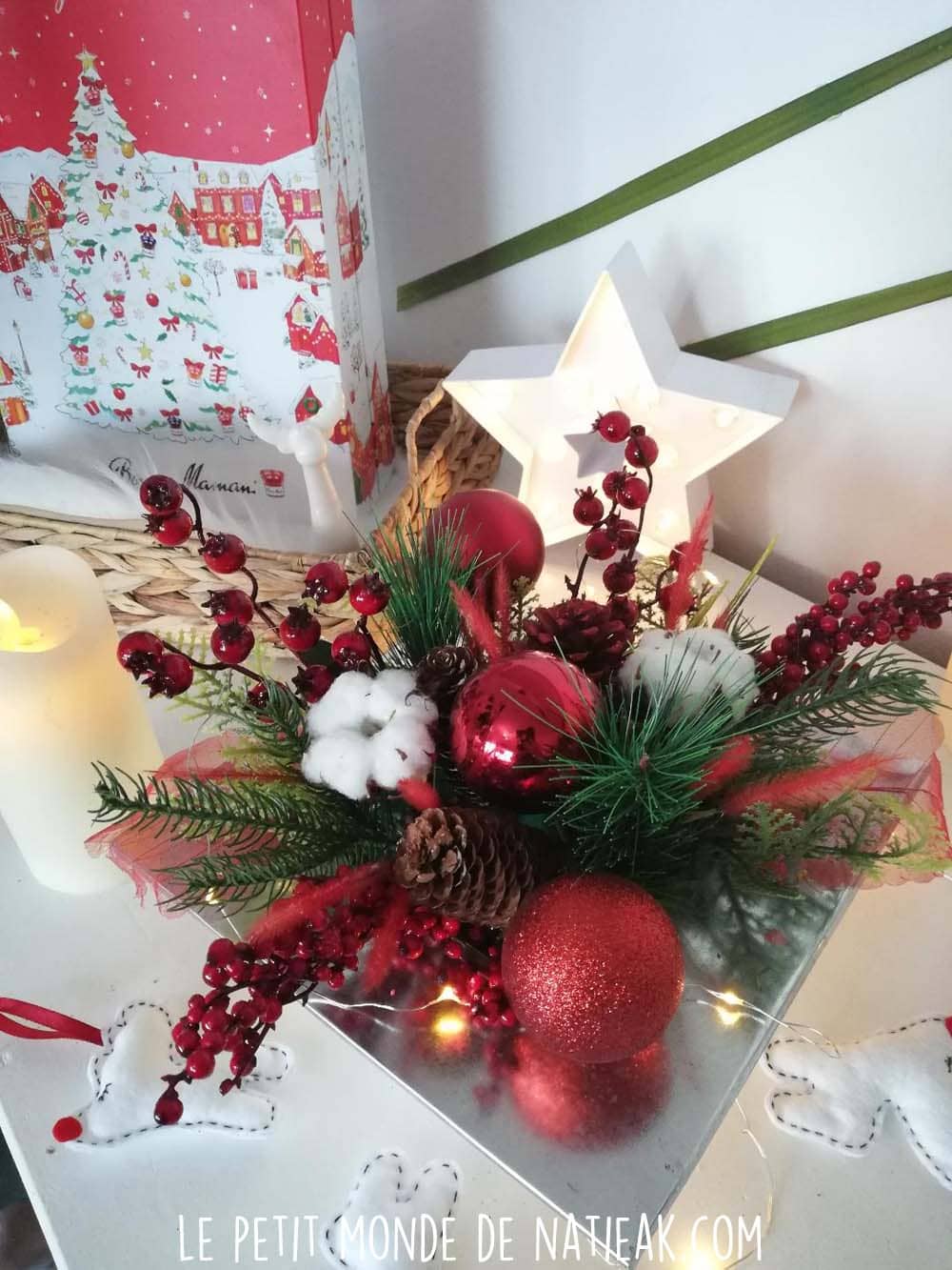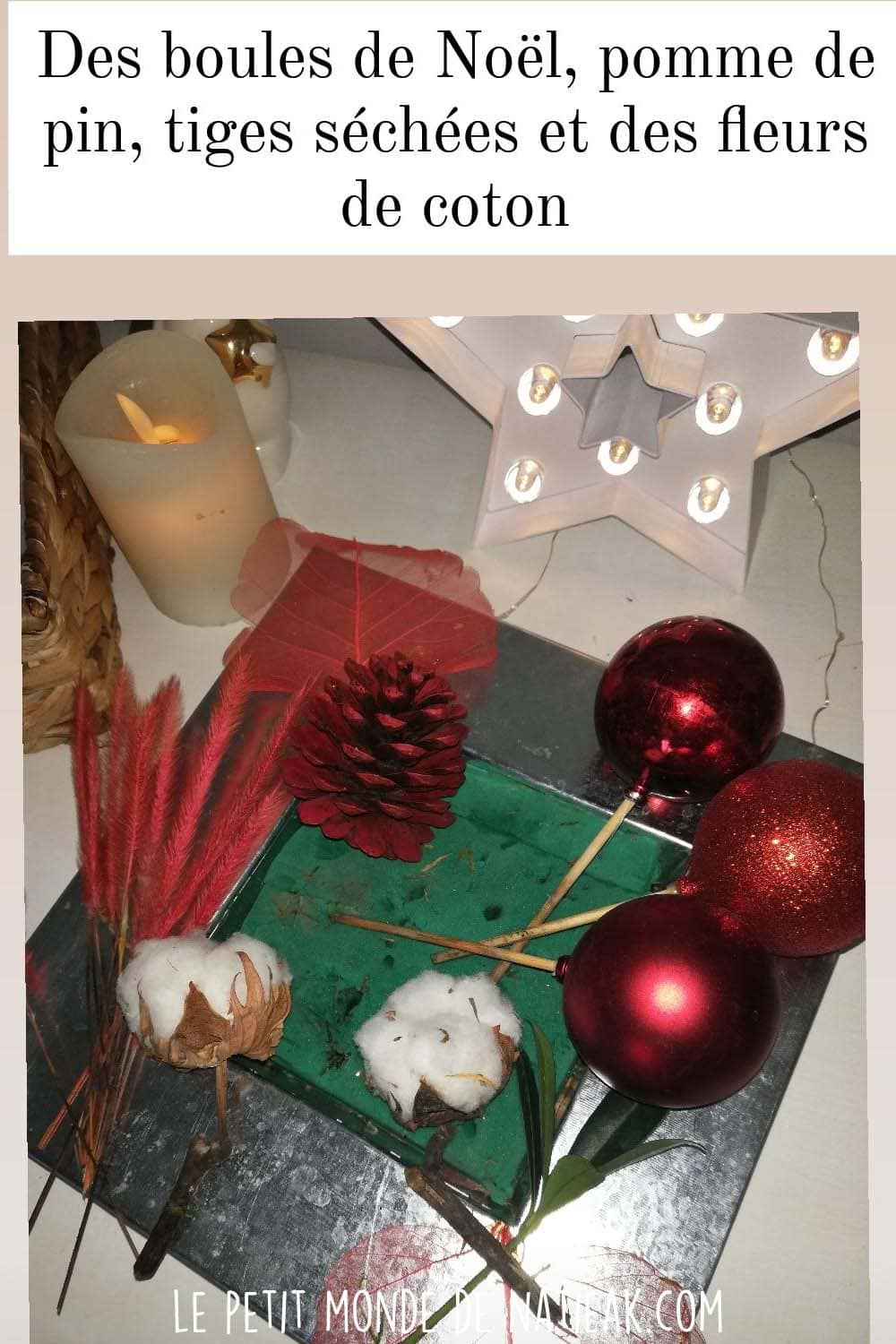 – Ajoutez des pommes de pin, boules de Noël, fleurs de cotons… On peut facilement acheter à bas prix des décorations de Noël en brocante, chez Emmaüs, La Croix-Rouge ou encore dans les enseignes Discount. Pensez aussi à demander à vos ami(e)s ou votre famille.