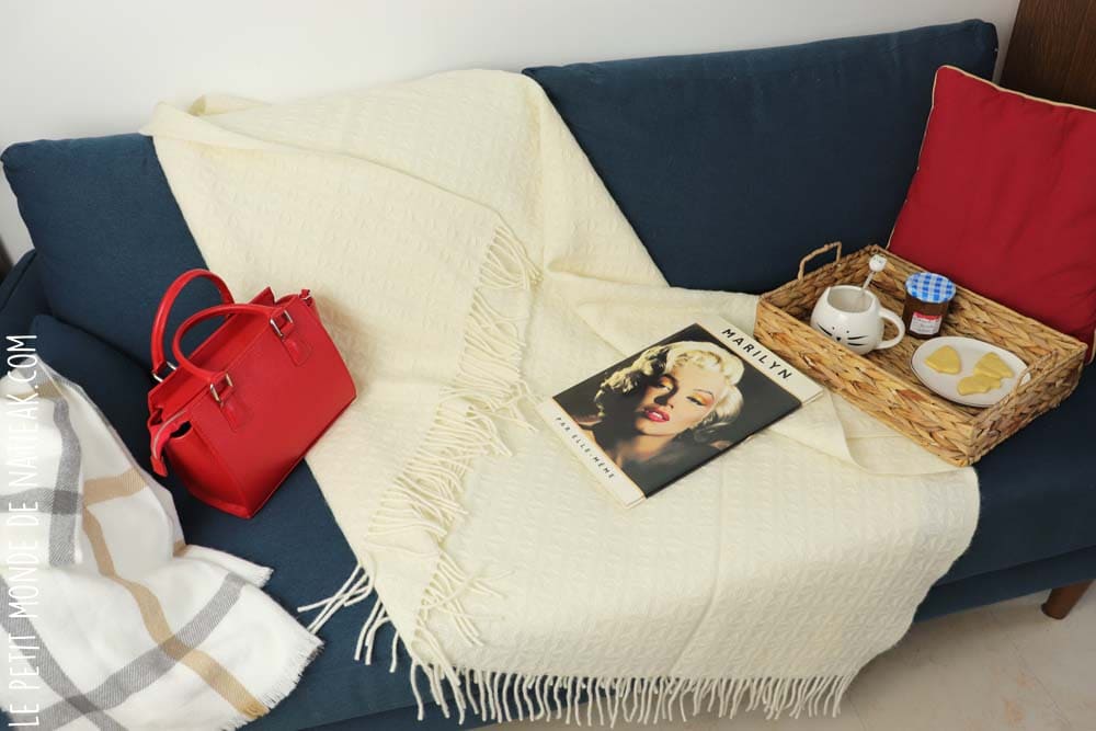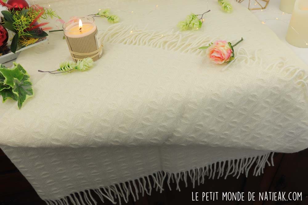 On doit cette création à l’entreprise suédoise Klippan fondée en 1879. Elle bénéficie d’un savoir-faire dans le textile depuis 5 générations. La qualité de ce plaid en fera assurément un cadeau d’exception. Il m’avait immédiatement attiré en le voyant sur la boutique : un plaid blanc cassé, tissé de motifs rectangulaires. Je suis plus que ravie de mon choix.