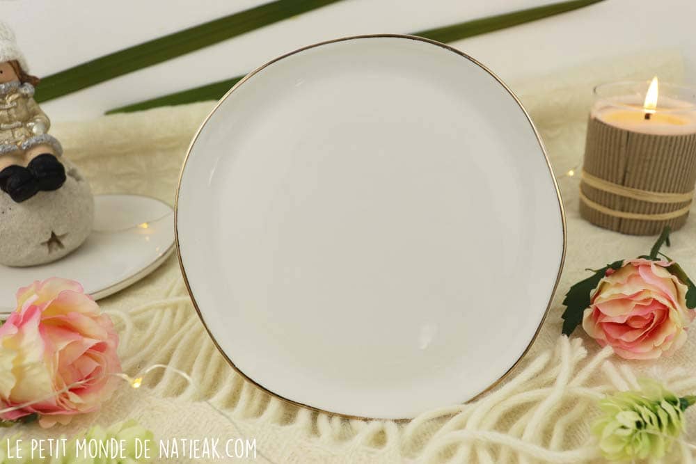 À Noël, on apprécie particulièrement de mettre en valeur nos plats : J’ai beaucoup hésité devant la grande diversité de vaisselle de Noël. Mon choix s’est finalement porté sur la marque Urban Nature culture et leur assiette à gâteau de la collection Good Morning : une jolie assiette blanche à la forme volontairement irrégulière, dont les bords sont ornés d’un liseré doré peint à la main.