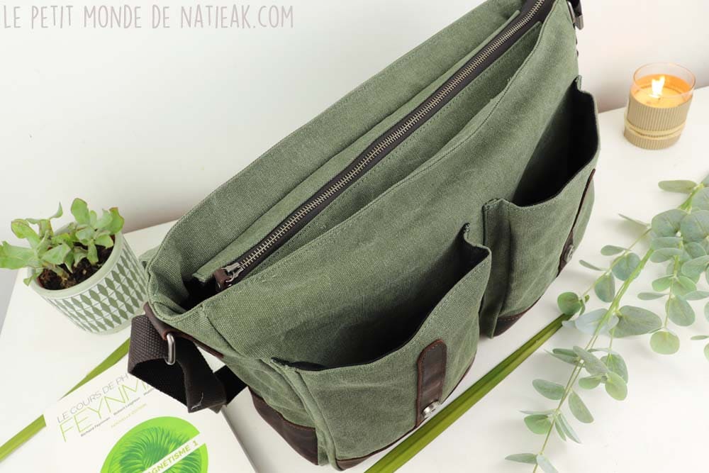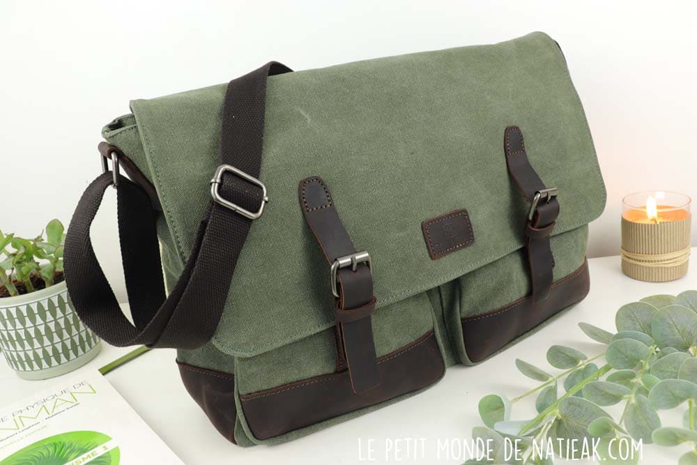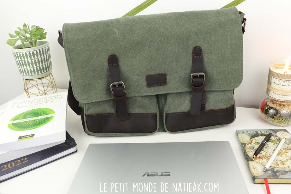 Devant la générosité des articles, je ne vous cache pas que le choix a été compliqué ! C’est finalement un sac en toile et cuir pour ordinateur portable qui a eu les faveurs de mon mari. Ce modèle était disponible en deux couleurs : gris et marron et vert et marron.