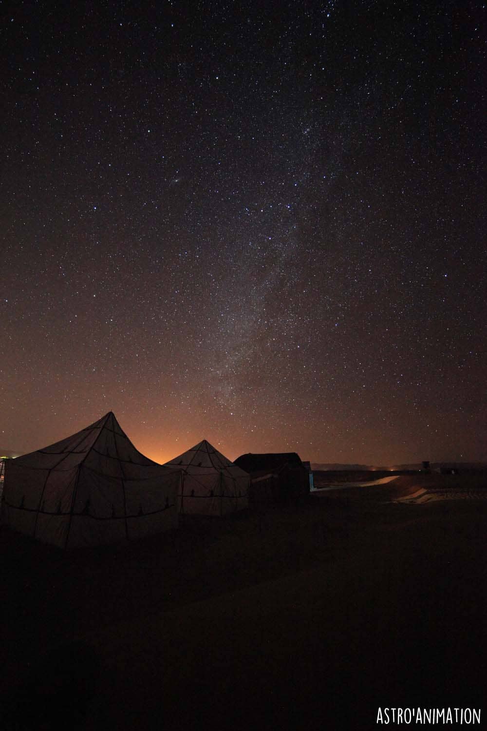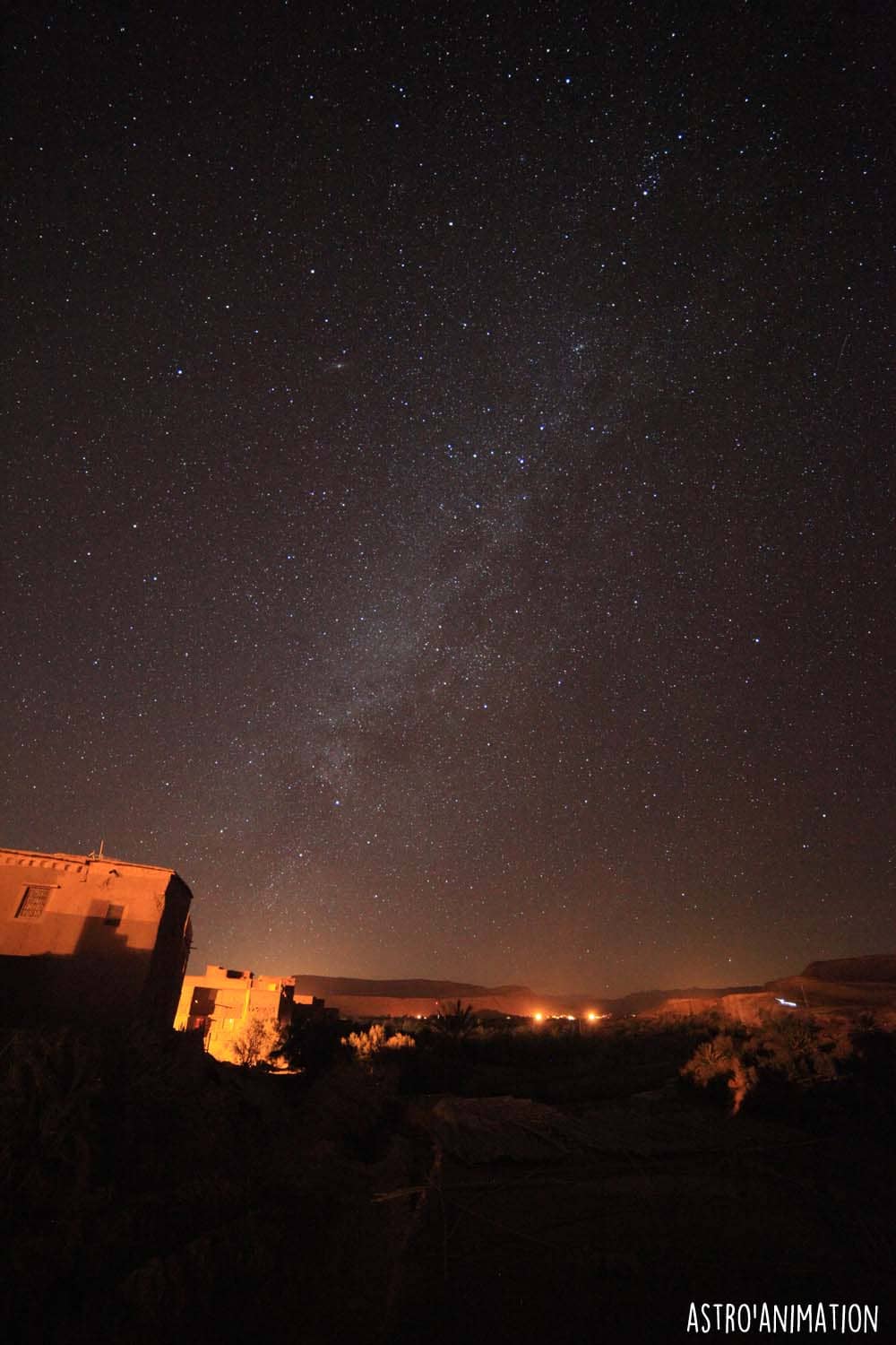 Le lendemain, Direction la gare routière, afin de prendre un bus pour Zagora, une ville située dans le sud marocain, capable de proposer de nombreuses activités (excursion, bivouac trek…). L‘objectif étant d’observer les étoiles, le choix de cette ville s’est fait en pensant que Zagora serait loin de toute pollution lumineuse : arrivé de nuit, il y avait de chaque côté de la route une rangée de lampadaire très lumineux. Ce n’était donc les conditions idéales pour observer la voie lactée.