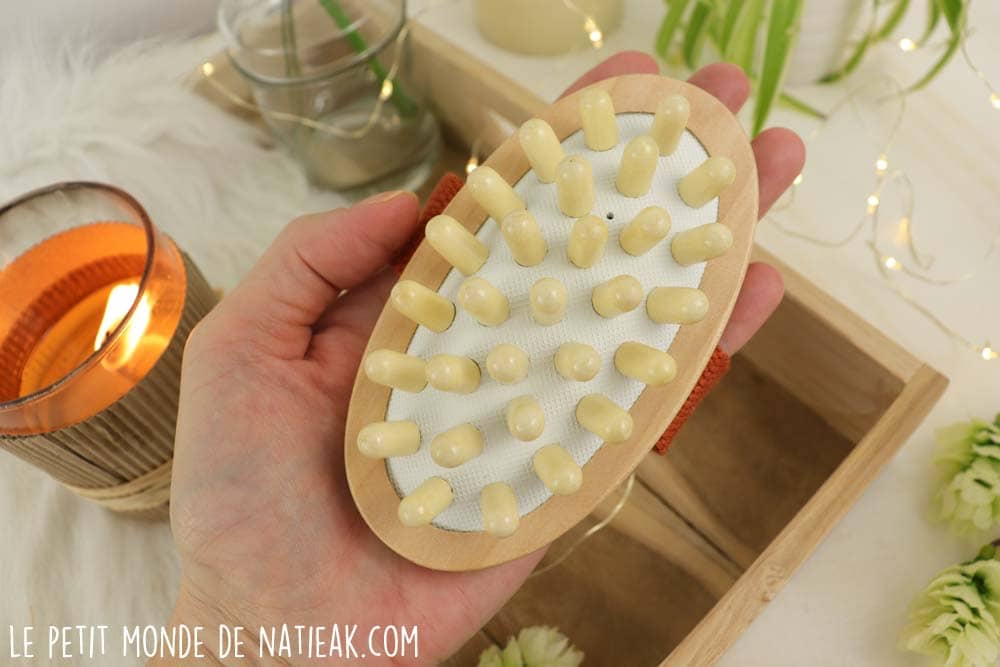 Lors du massage avec l’huile sublime, on pourra utiliser la brosse destinée à stimuler la circulation sanguine, afin de réduire la cellulite tout en s’accordant un moment à soi de relaxation en l’associant à l’huile sensorielle de Cinq Mondes.