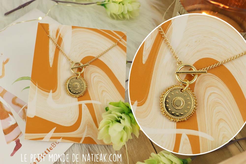 Qu’on soit adepte ou non de méditation, on aura plaisir de le porter à toutes les occasions. Il mettra en valeur la silhouette avec élégance et originalité tout en soulignant le décolleté. C’est toujours une belle surprise de recevoir un bijou dans cette box : rappelez-vous des créoles dorées torsadées de novembre 2021.