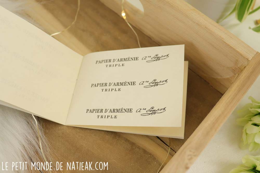 On termine avec le papier d’Arménie destiné à désodoriser et parfumer la maison avec des notes orientales. Ce désodorisant d’intérieur a été créé en 1885, afin d’éliminer les senteurs de cigarette, cuisine, d’animaux… Son créateur a eu l’idée d’intégrer dans la feuille de la résine de benjoin (vertus désinfectantes). De nos jours, on utilise encore le benjoin en application externe comme cicatrisant.