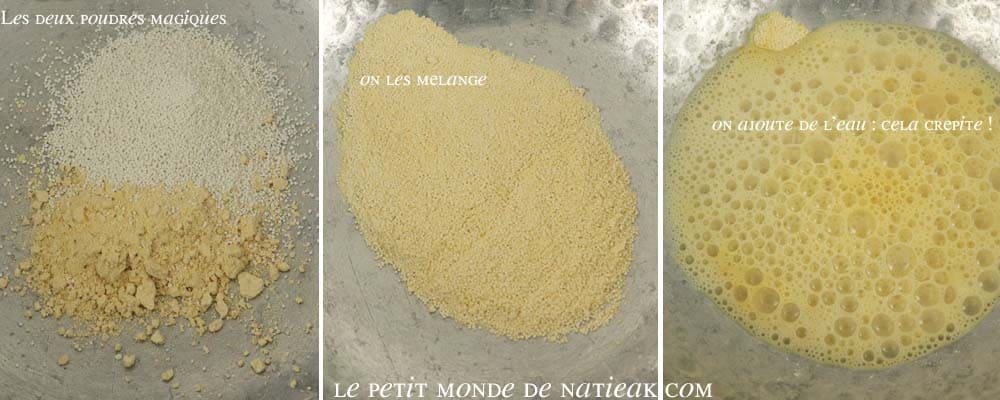 Une fois le matériel réuni, l’enfant peut commencer la préparation. Si ce tutoriel est d’une grande simplicité, il ne manquera pas d’attiser la curiosité et l’étonnement. Je pense notamment au moment où l’enfant mélangera les deux poudres magiques avec de l’eau : le mélange se mettra à crépiter, ce qui l’amusera tout en l’amenant à se poser des questions sur cette réaction. La préparation se veut aussi sensorielle, notamment lors du mélange de la recette de perlinpimpim, qui offre une senteur d’agrume très fraîche.
