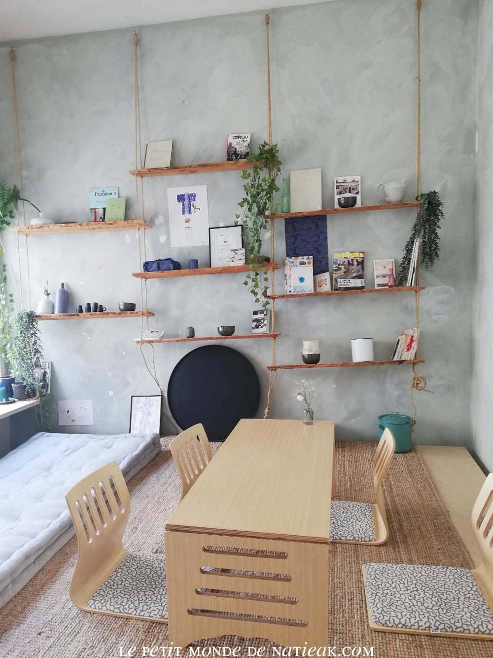En attendant, je vous partage l’envers du décor avec notamment des idées de décoration très inspirantes aussi bien pour votre appartement que votre terrasse : des étagères suspendues à des cordes, des balançoires en guide de chaise ou encore une baignoire végétalisée.