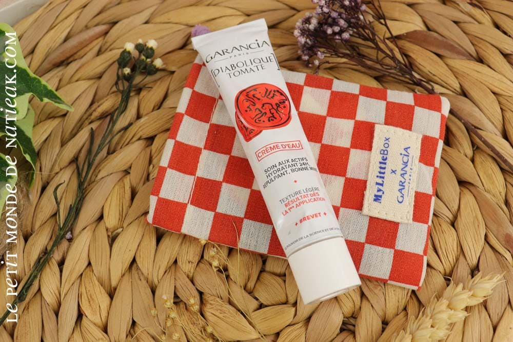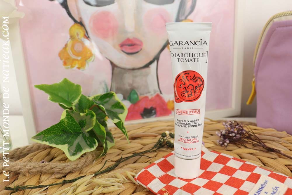 Pour un effet bonne mine, Garancia a imagine la crème d’eau Diabolique Tomate : un soin hydratant et repulpant à la texture légère. On bénéficie encore une fois d’un soin Made in France (très bien noté sur Yuka) aux actifs anti-âge dont la texture orangé ultra légère fond immédiatement sur la peau. Notons une senteur d’une grande douceur que je trouve très agréable.