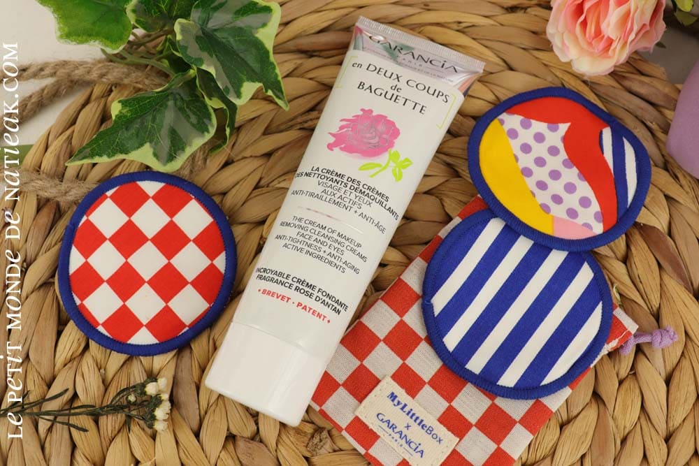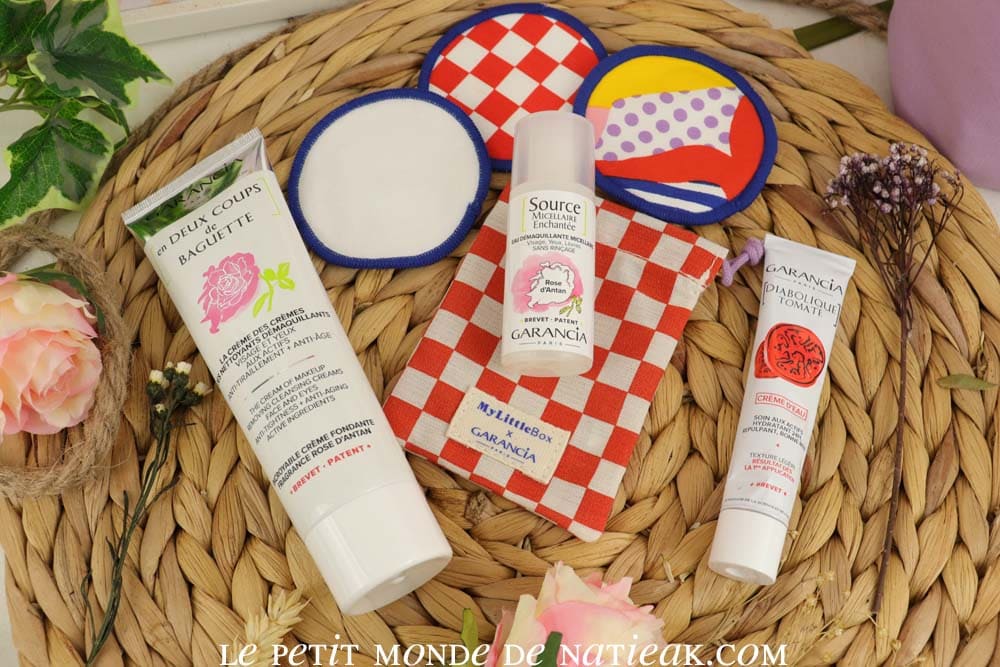 En soin beauté, la box est tout aussi généreuse. En plus des linettes lavables, Garancia nous propose de découvrir trois soins pour le visage : eau démaquillante micellaire, une crème nettoyante et démaquillante et une crème bonne mine.