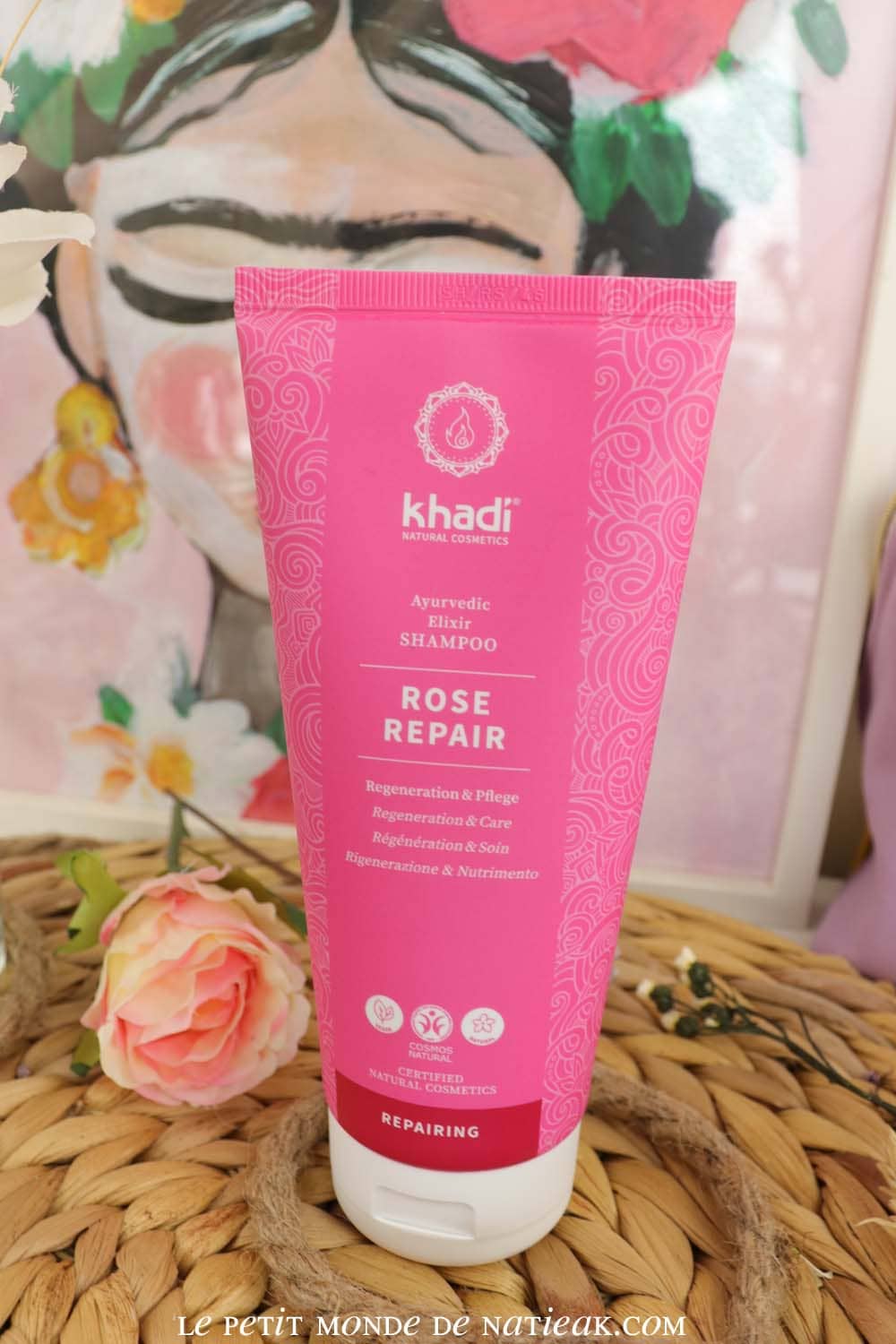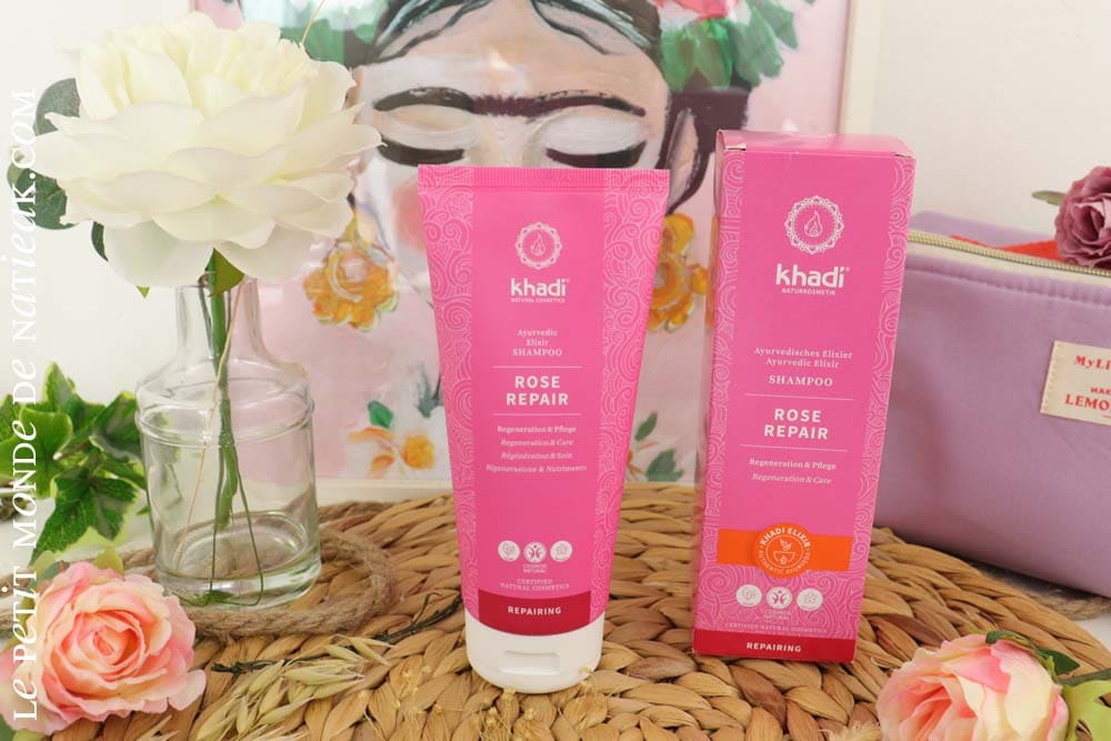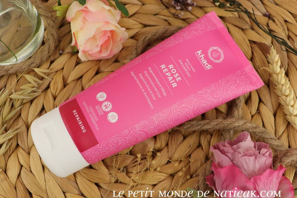 Pour prendre soin de nos cheveux, voici le shampoing Elixir Ayurvédique Rose repair de Khadi. Il s’agit d’un soin lavant, capable de nourrir et de régénérer les cheveux abîmés. Certifié Cosmos naturel, Khadi a imaginé une formulation 100 % naturelle et vegan.