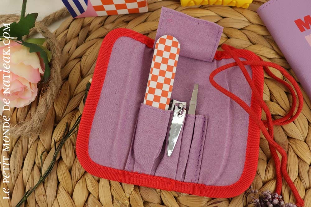 On pourra glisser dans notre trousse de toilette le kit manucure : celui-ci contient une lime à ongles deux faces, un coupe-ongle et une pince à épiler.