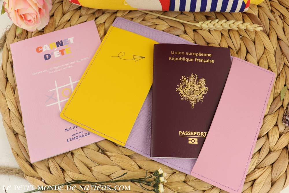 Côté accessoire, je commence avec le porte passeport nommé Make paper planes (Faire des avions en papier). On pourra ainsi protéger son document dans cette jolie pochette 100 % PVC dont la couleur reprend celle de la trousse de toilette.