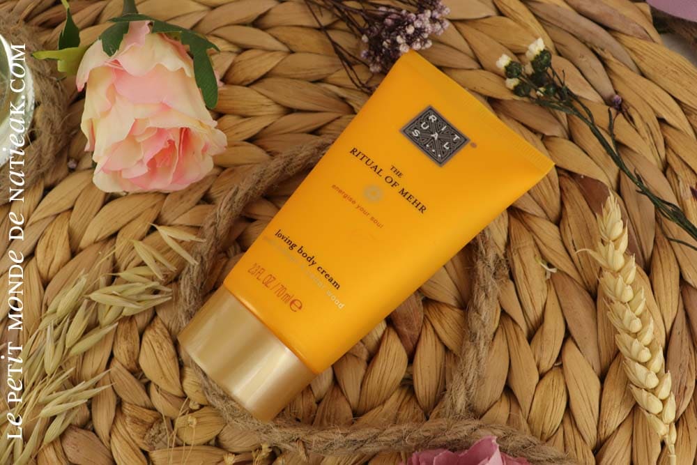 En soin pour le corps, je découvre la crème corporelle The ritual of Mehr de Rituals. La marque a opté pour un soin nourrissant à la senteur pétillante d’orange associée à des notes florales et de bois de cèdre. C’est un parfum que j’apprécie et d’autant plus en cette période estivale.