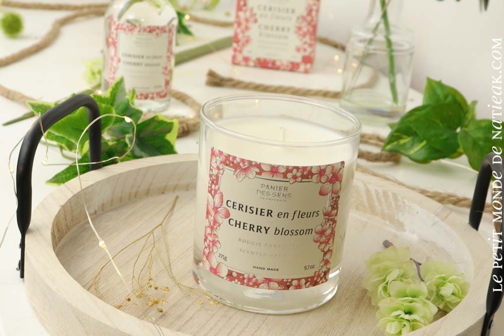 ↪ Bougie Cerisier en fleurs Panier des Sens 32 €.