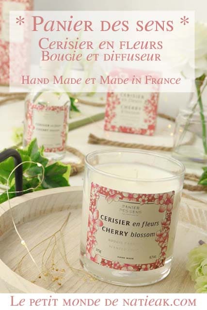 Celui-ci met à l’honneur la fleur de cerisier et ses notes à la fois élégantes et délicates. C’est donc un voyage vers les vergers en pleine éclosion que nous propose Panier des Sens avec cette collection florale. Pour reproduire cette senteur voluptueuse, le maître parfumeur a intégré dans les notes de tête du cassis offrant ainsi le parfum acidulé du fruit. En notes de cœur, les bourgeons et les fleurs de cerisier amènent un parfum tout en délicatesse puis vient les notes de fond de bois sombres et musqués. Nous avons eu avec ma fille un joli coup de cœur pour cette bougie dont le parfum à la douceur féminine incarne merveilleusement bien la délicatesse de ces fleurs.