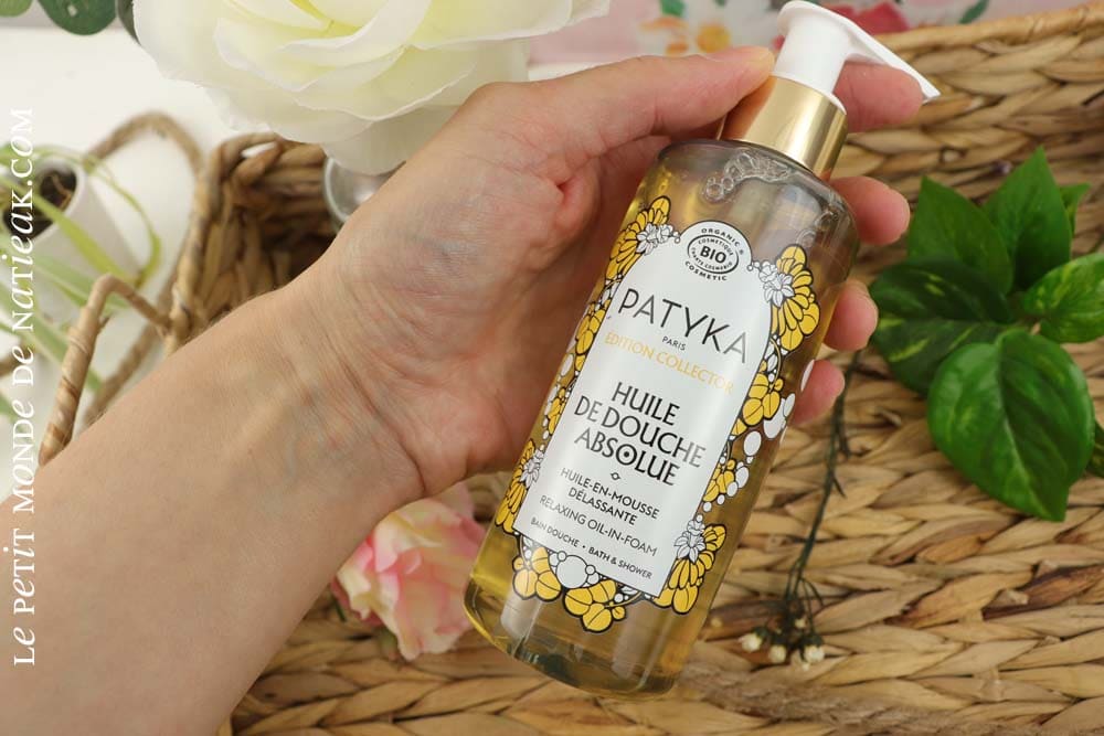 Cette Huile de douche en édition collector est inspirée de la célèbre Huile absolue imaginée il y a un siècle. À l’occasion du 20e anniversaire de la certification bio de Patyka, la marque a souhaité créer un soin d’hygiène pour le corps dans la même ligne que son huile Star. Destiné à parfumer avec délicatesse – le parfum reprend celui de l’huile absolue – ce soin promet également de nettoyer tout en relaxant l’esprit. Pour répondre à ses promesses, Patyka a intégré dans sa formulation – composée de 98.8% d’ ingrédients d’origine naturelle – quatre huiles végétales bio et essentielles afin d’offrir une fragrance à la fois florale et herbacée.