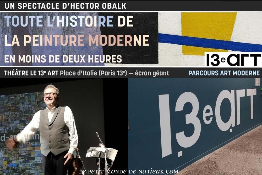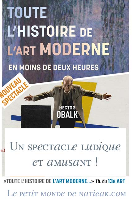 Après Toute l’histoire de la peinture en moins de deux heures, l’historien Hector Obalk nous propose Toute l’histoire de l’Art moderne. Séduite par son premier spectacle, c’est avec impatience et curiosité que je me suis rendue au Théâtre 13ème Art à Paris : en voici mes impressions.