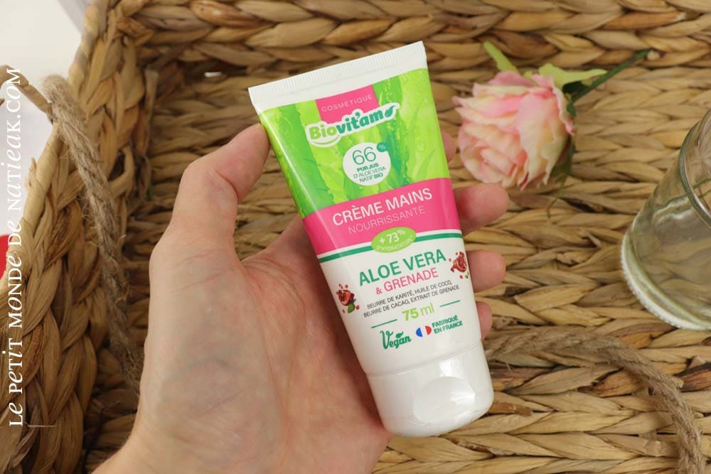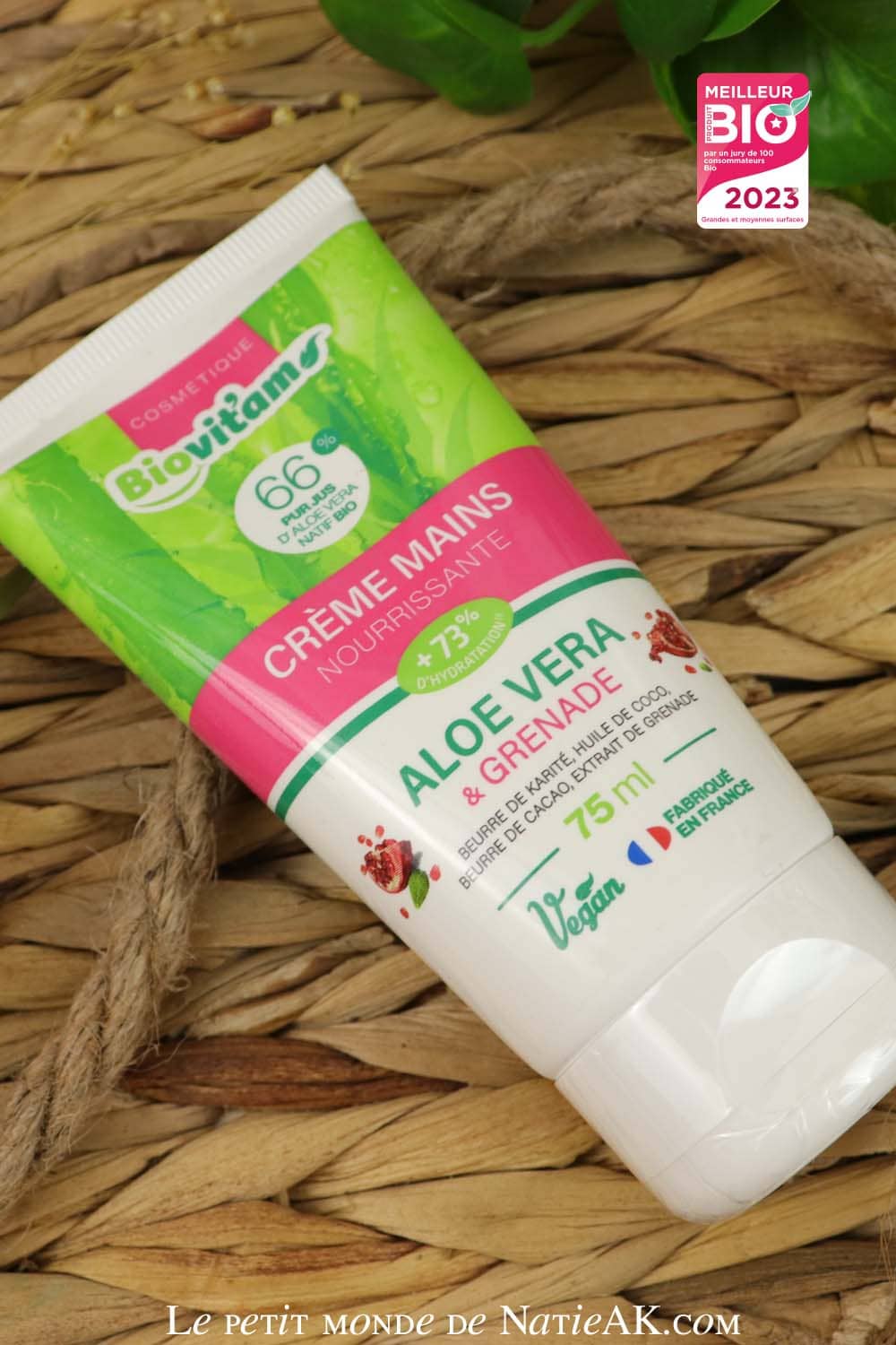 ⇒ Crème mains à l’aloe vera et grenade  est vendue à 12,90 € .