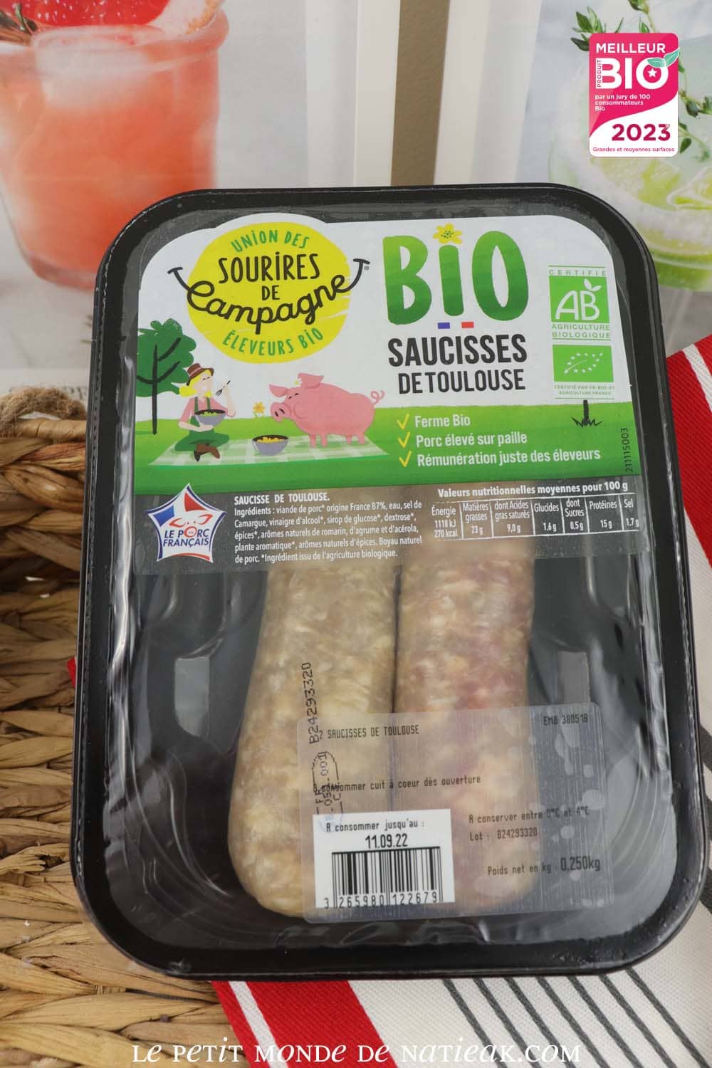 ⇒ Les Saucisses de Toulouse Union des sourires de campagne éleveurs bio sont vendues à 4,06 €.