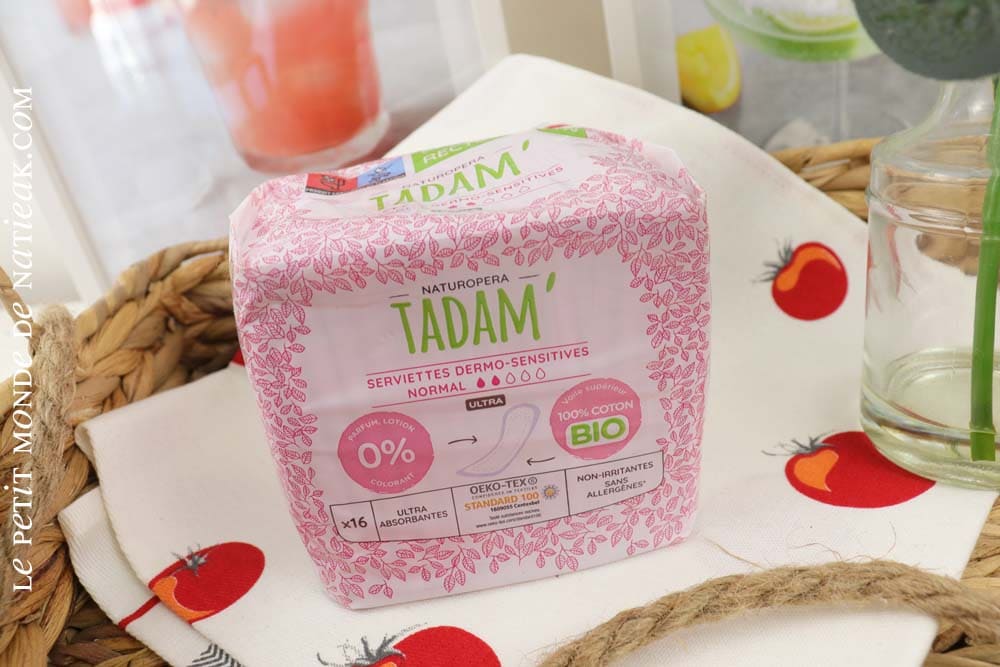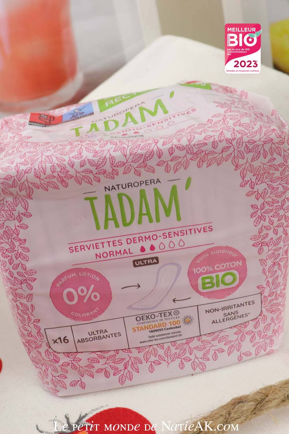 ⇒ Serviettes hygiéniques bio Tadam vendue à 2,55 € .