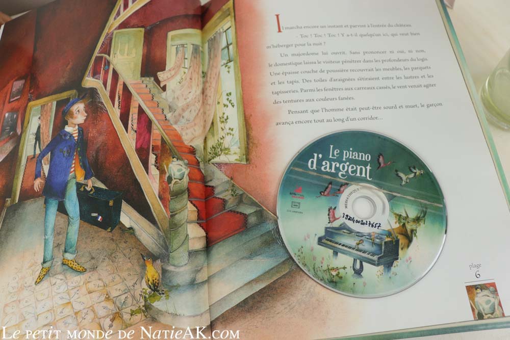 En somme, c’est un conte rapide (une vingtaine de minutes), à la narration CD impeccable. Bien entendu, les improvisations au piano faisant partie de la narration, si vous souhaitez lire vous-même l’histoire, vous devrez faire sans. Heureusement, le CD offre aussi, en plus du conte, 55 minutes de musiques du conte, ce qui vous permettra de les mettre en fond pendant votre lecture si vous le souhaitez, afin d’au mieux s’imprégner du piano d’argent, comme s’il jouait pour nous… un beau moment parent-enfant en perspective.