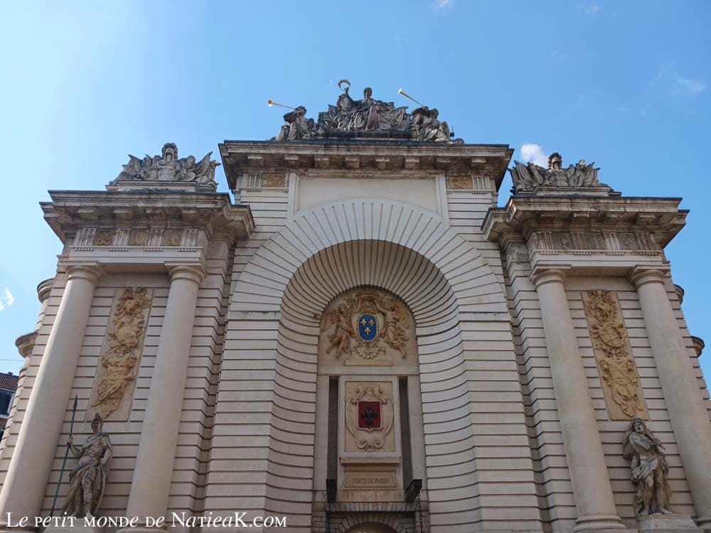 J’ai pu contempler la Porte de Paris, un peu plus excentrée, aussi y avait-il peu de monde et ai-je pu être un peu plus tranquille pour prendre quelques photos. J’y ai aperçu le Beffroi de l’Hôtel de ville.