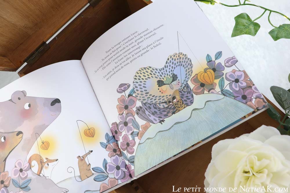 Dans ce conte délicat bercé par la lumière tendre d’une demi-lune, les bois révèlent un arc-en-ciel de couleurs pastels portée par l’illustratrice Violaine Costa, qui nous plonge dans une épopée merveilleuse à travers la faune et la flore qui habitent et protègent ses occupants. La richesse de leur diversité est introduite par son auteur, Gilles Diederichs, qui présente tout au fil de l’histoire différentes espèces que rencontre la petite Lucie, et auxquelles on se familiarise à travers son regard émerveillé. En somme, une fable qui introduit l’enfant aux merveilles de la nature, à sa diversité, et aux trésors qu’elle nous offre déjà.