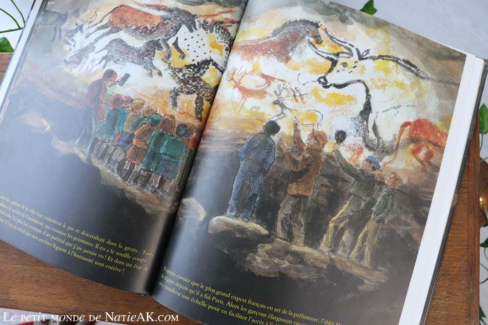 Sous le prisme d’un jeu d’enfant, la découverte de la grotte de Lascaux prend les airs d’une grande aventure, comme celles qui l’on entreprenait enfant, libérés de la surveillance de nos parents. Les dessins, à l’allure de BD réaliste, permettent une meilleure immersion que ne l’aurait fait un simple livre retraçant l’histoire de cette découverte.