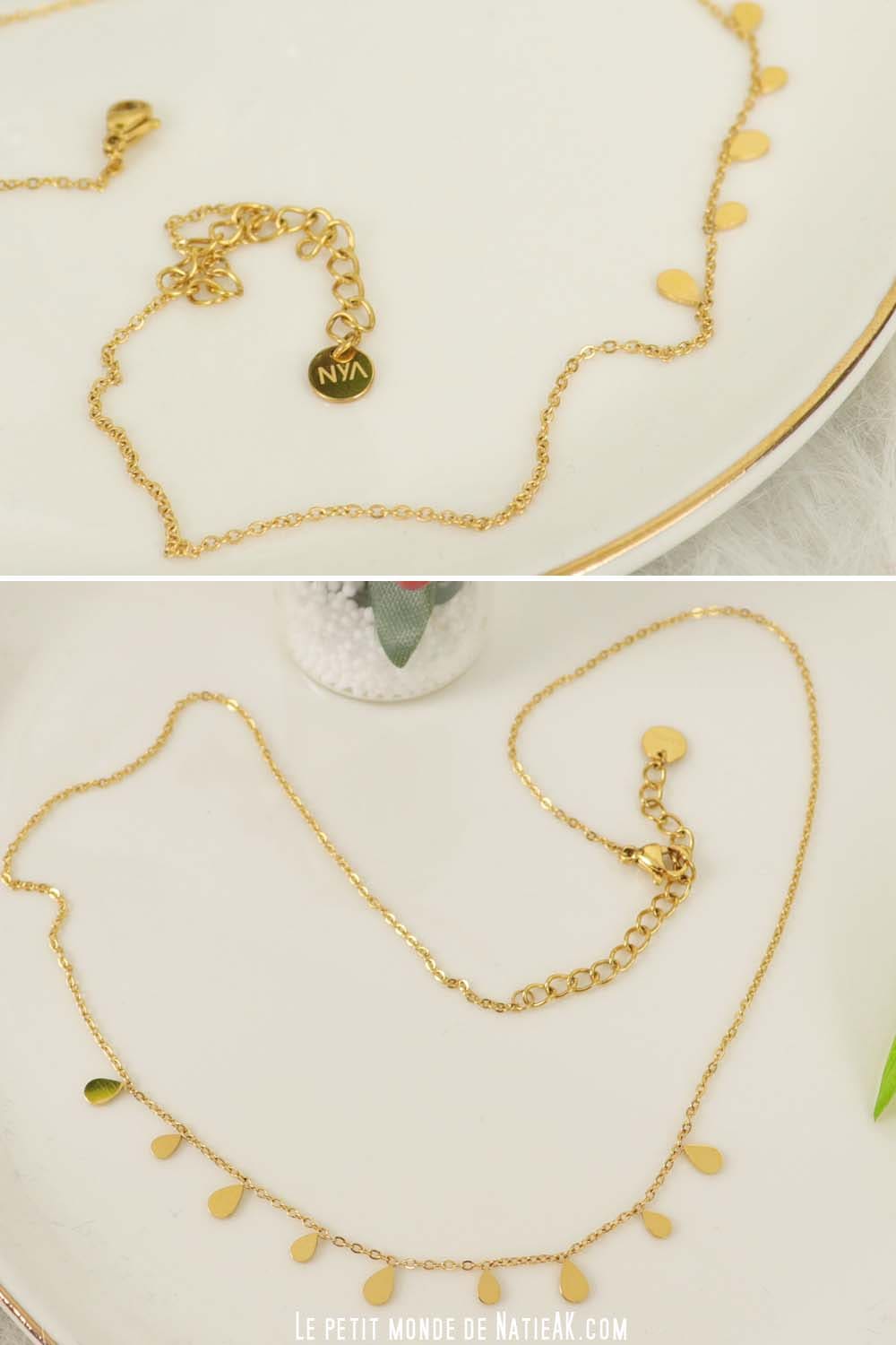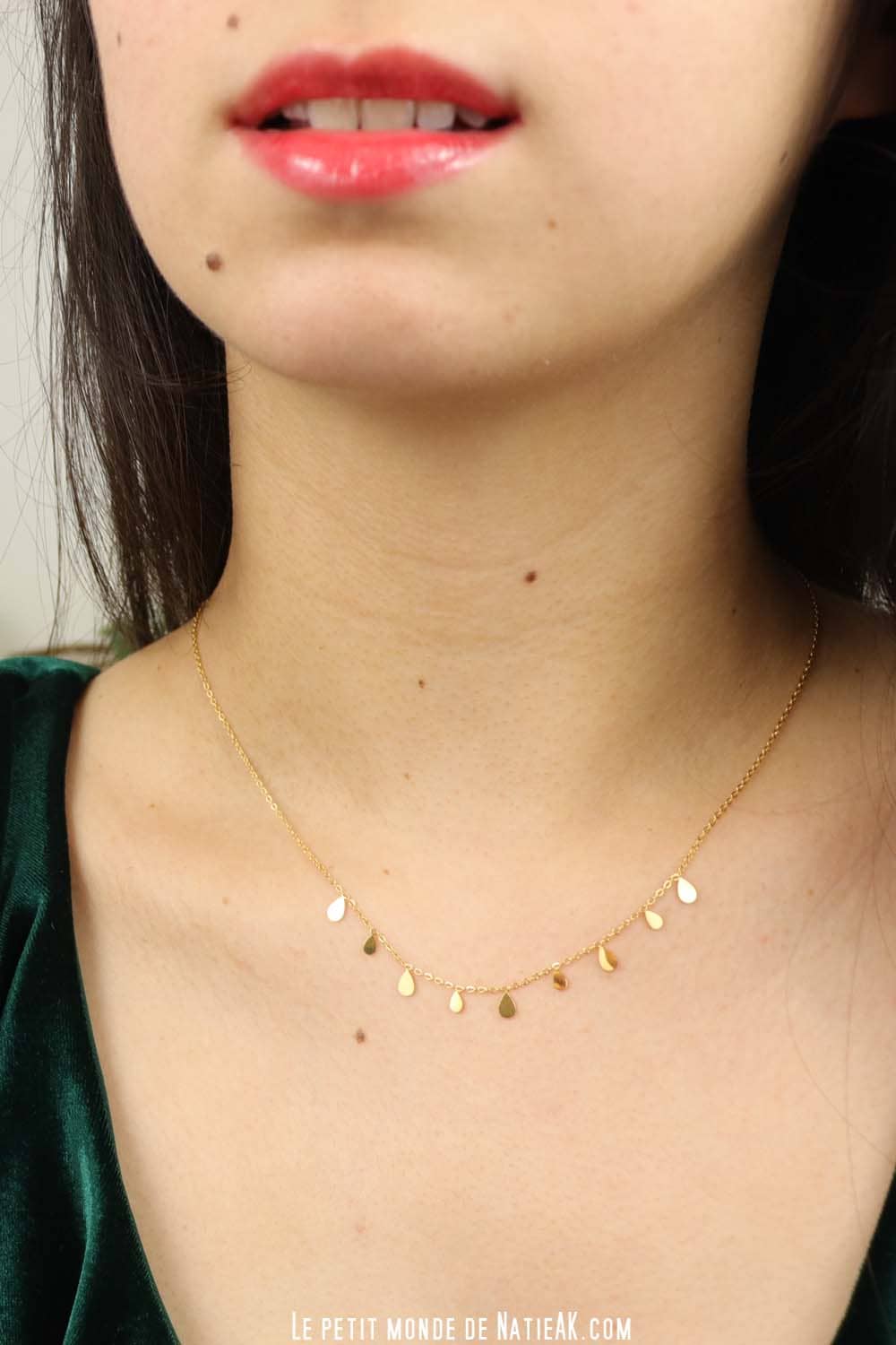 Dans sa première box Douceur d’Automne, La Muse box collabore avec Labelle en proposant un collier doré orné de petites décorations mobiles. Telles de petites gouttelettes dorées, les pampilles captent magnifiquement la lumière environnement. C’est un bijou fin tout en délicatesse et féminité, qu’on aura plaisir à porter seule ou avec d’autres colliers.