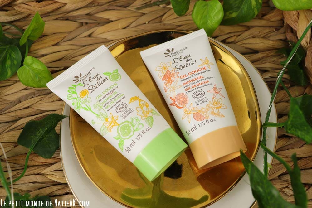 Fleurance Nature nous proposait de découvrir les gels douches à la senteur d’agrumes et de fleurs blanches ainsi que la verveine & bergamote (vegan) dans un format de 50 ml. J’aime autant le packaging tout en douceur, que la composition contenant 99 % d’ingrédients d’origine naturelle et bien évidemment labellisé Cosmos organic, et certifié par Ecocert. Je vais les conserver pour l’été, car ce sont des senteurs que j’affectionne tout particulièrement lors de la période estivale.