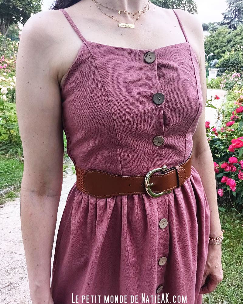 Lors de la soirée, chaque poulette a pu choisir la tenue de son choix. J’ai dans un premier temps hésité entre un pantalon (alors que je n’en porte jamais !), mais j’ai finalement jeté mon dévolu sur cette très belle robe unie Vieux rose. En coton et lin, la tenue, qui s’accompagne d’une ceinture, est très confortable et toute légère. C’est la robe idéale pour la saison estivale. Vendue à 29,99 € (le code promo inspee offre 20 % de réduction), elle est disponible en taille 36 au 48 et existe également en beige et bleu canard. Je l’ai accompagnée d’un collier Oumy de Labelle By Astrid et le collier Confiance de Zag bijoux (que j’ai reçu en cadeau de Bénédicte du blog Princesse acidulée).