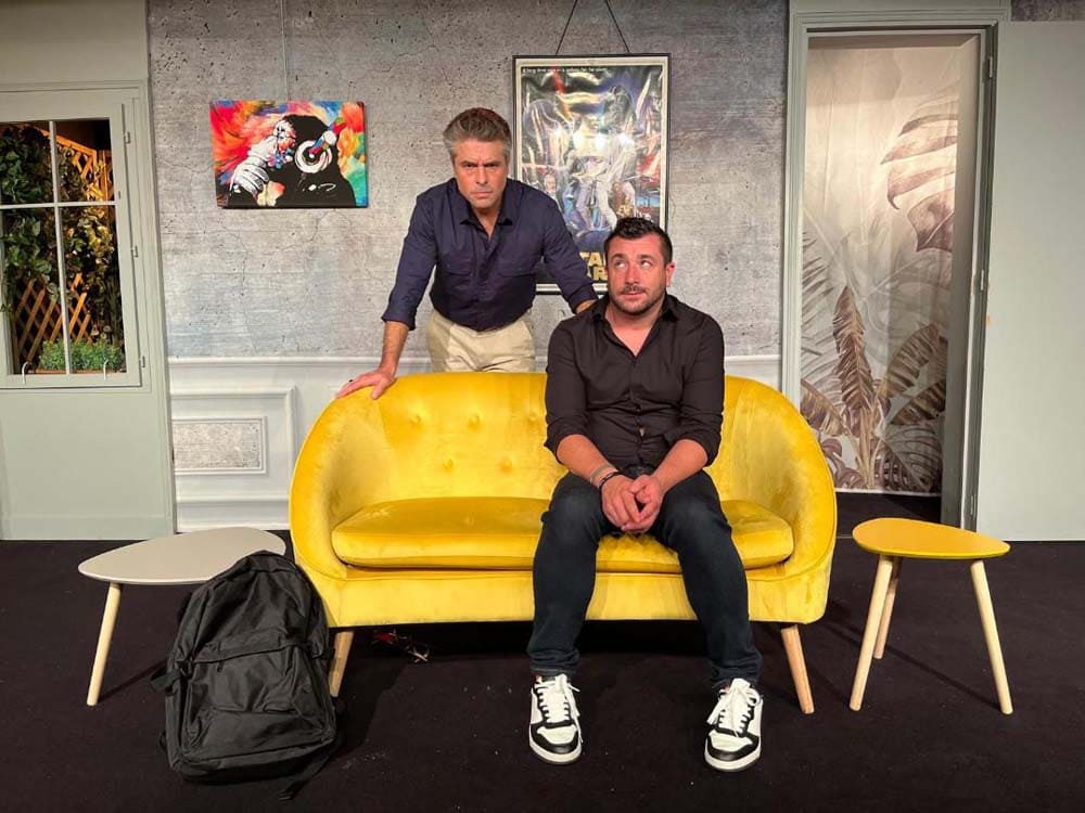 Avec Aimie, nous avons été amusées par le descriptif de la pièce La photo de mon pote, programmée jusqu’au 28 janvier 2025. L’affiche illustre parfaitement la situation : imaginez un homme qui s’inscrit sur un site de rencontre, mais plutôt qu’utiliser sa photo, préfère celle de son pote William… L’idée lui semble bonne, puisqu’il attise immédiatement l’intérêt de la gente féminine. Tout se complique lorsqu’il décroche un rendez-vous avec Claire. Au pied du mur, il révèle son méfait à William, tout en lui demandant d’échanger leurs places lors du 1er rendez-vous… qui a lieu le soir même !